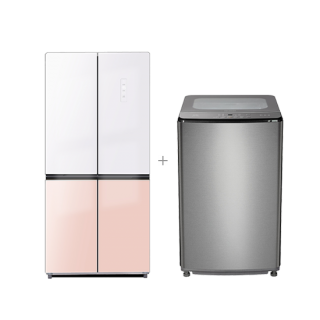 [하이얼+치큐] 글램글라스 4도어 냉장고 433L 글램화이트/피치핑크 + 통돌이 세탁기 10kg 실버 [HRS445MNWP+WIN10DR]